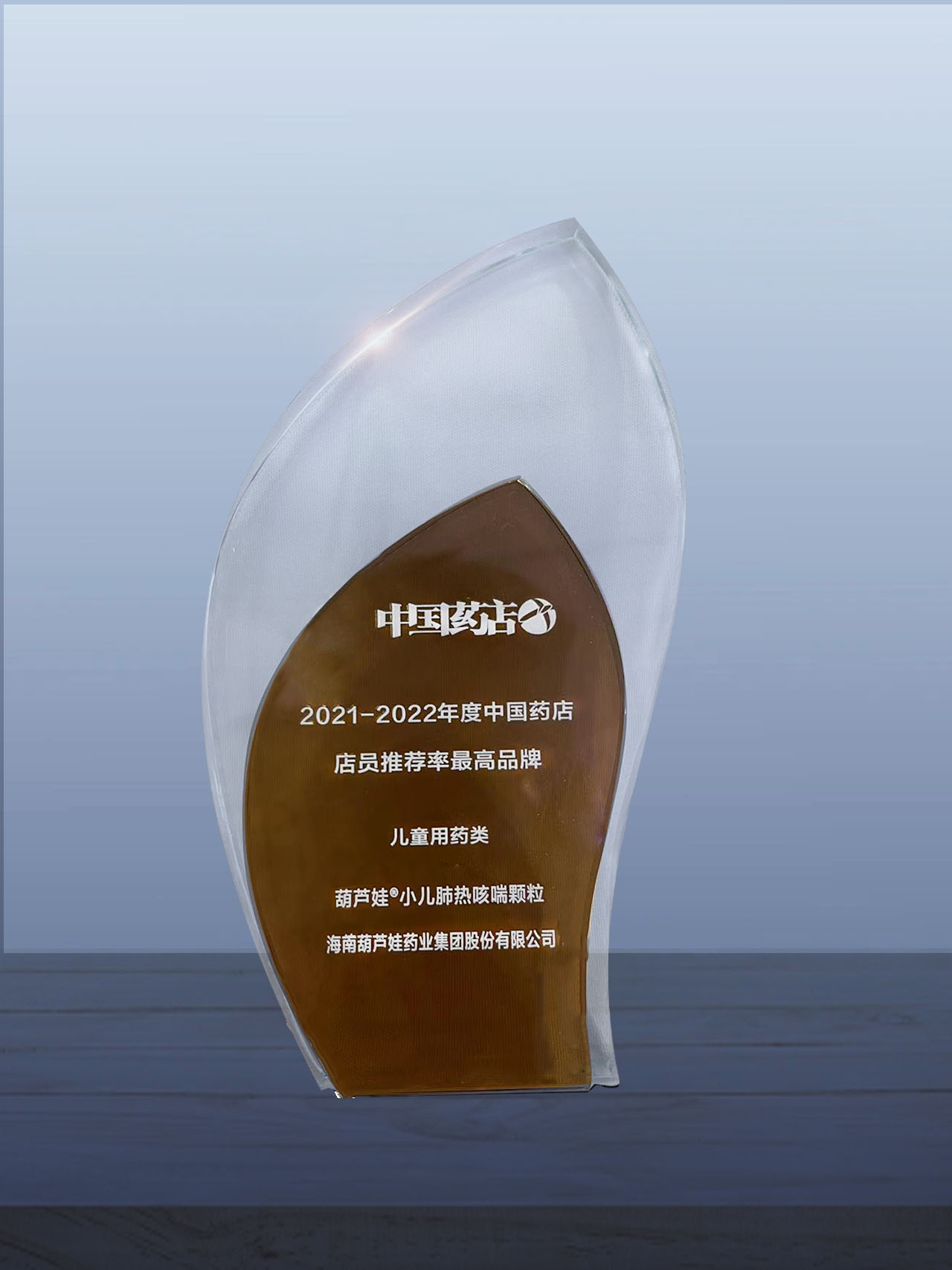 近日,由《中国药店》杂志社举办的“2022~2023年度中国药店发展报告暨中国药店价值榜发布会”在青岛举行,会上发布了“2021-2022年度中国药店店员推荐率最高品牌”奖,东升国际药业两大明星产品东升国际牌小儿肺热咳喘颗粒(4g)、东升国际牌肠炎宁颗粒(2g)双双上榜。